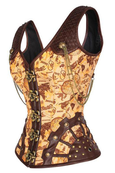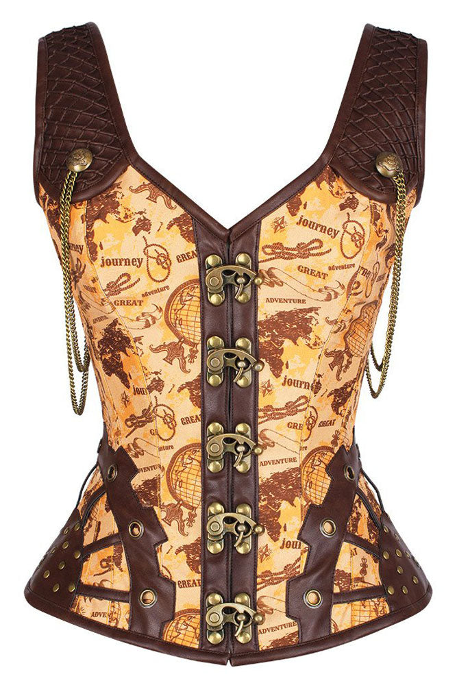 Vintage corset shapewear with thong ...just cause your laced up tight doesn’t mean they can control you, baby. This amazing corset features a smooth black leather spliced construction, flexible boning for a comfortable sleeking slim fit, full length lace up back, brass studs and buttons detail with drippy wraparound chains, and insane latch hook front closures.