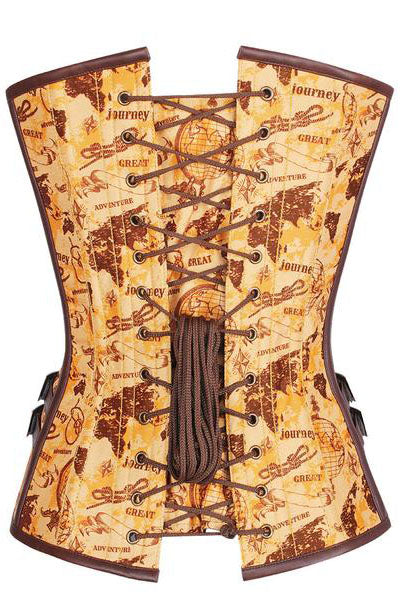 The ultimate in steampunk fashion has to be the corset and we are proud to bring you this wonderful example of tailoring; the overbust steampunk corset with buckles and brass clasps. The corset itself has a satin print design but the fun doesn’t end there. It comes with popping leather trim. The strong cord lace-up back will do wonders for achieving that perfect hourglass figure. A matching thong included.