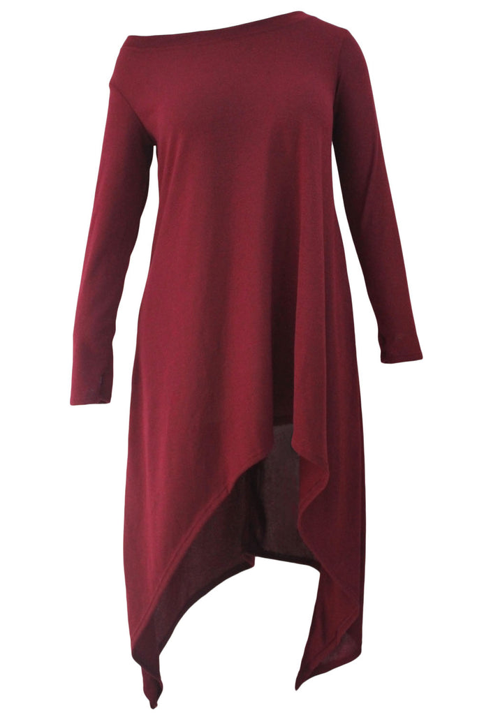 Burgundy Asymmetric Hemline Long Sleeve Oversize Sweater