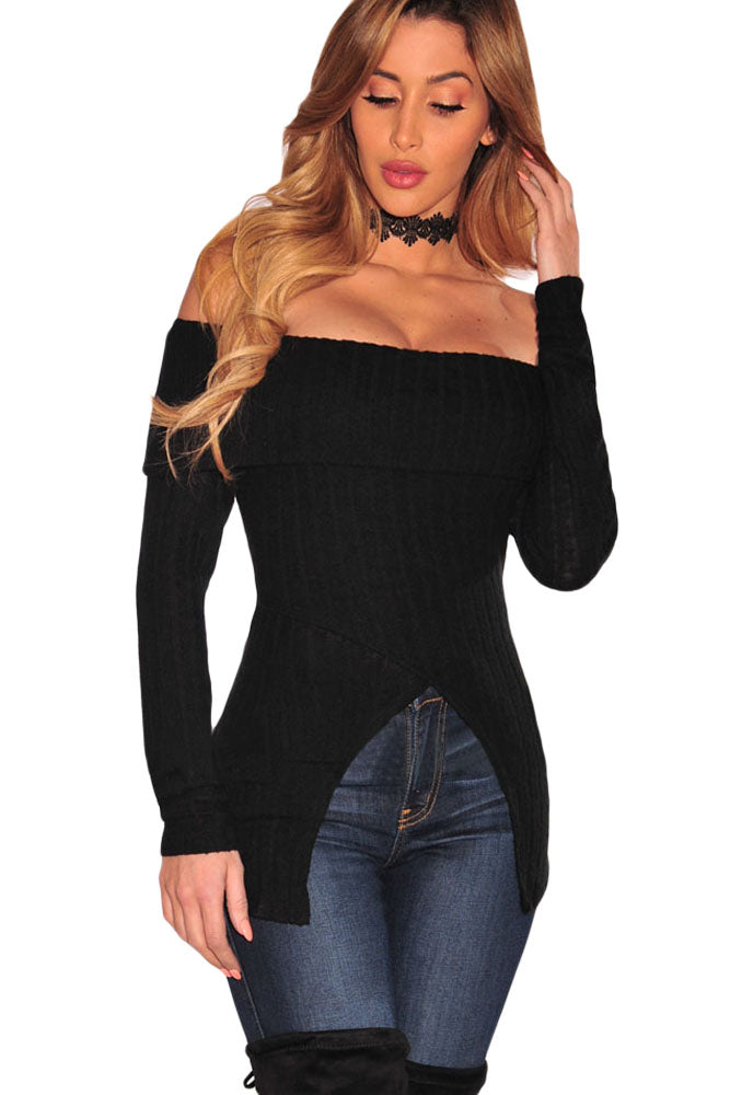 Feel warm and still stylish! A trendsetting sweater top designed with a fold over off shoulder with long sleeves. Ribbed knit bodice with classic ribbed texture in a slim fit silhouette. Ribbed Knit Off Shoulder Slit Long Sleeved Top looks amazing with a choker, skinny jeans, and thigh high boots! Cheap dropship womens clothing from factory directly benefit all the resellers a lot.