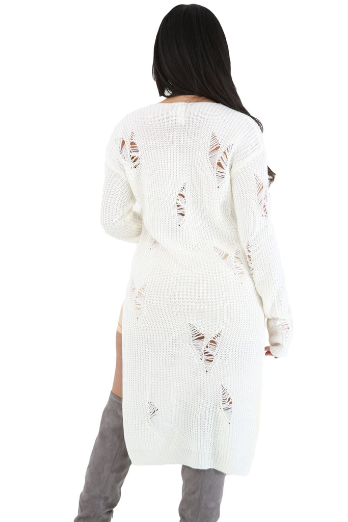 Look fashionable and perfect fit in this sweater top since its relaxing knit all throughout, the chic shredded accents will steal the show, round neckline, long sleeves and high-low hem, soft material knee high length, a season essential for fashion ladie comes in rib texture with shredded detail and a long-line cut perfect for layering over light-weight tops and slim-fit trousers. Cheap dropship womens clothing from factory directly benefit all the resellers a lot.