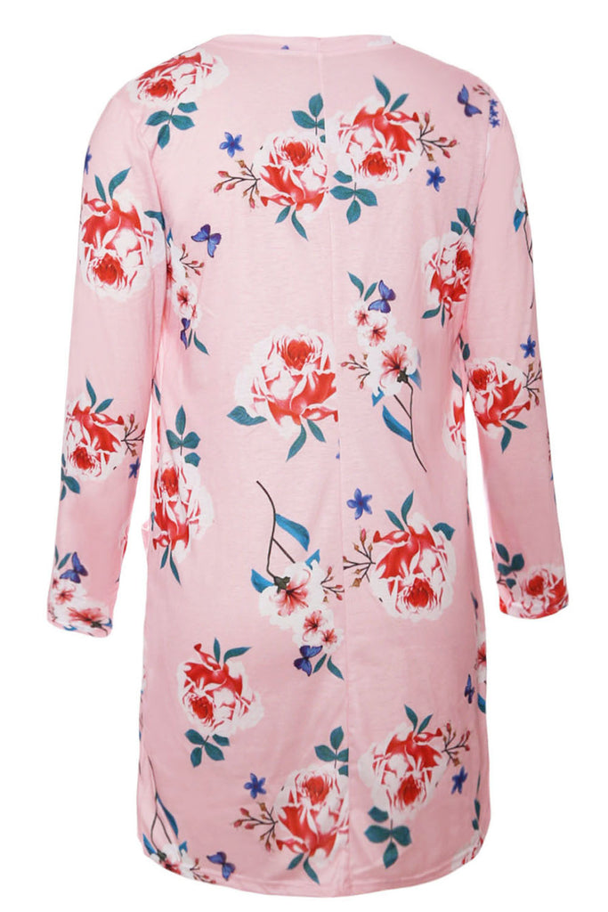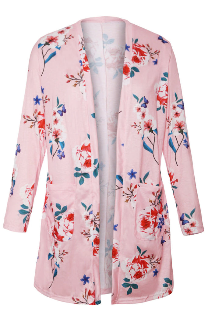 Pink Long Sleeve Floral Cardigan